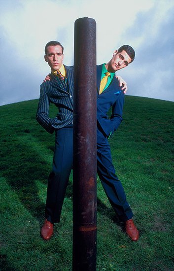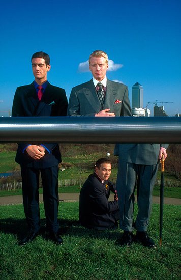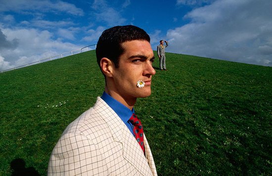 Men's fashion using perspective devices and surrealism.