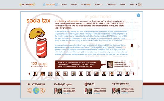Identity and web design for a social networking site for activists. Site features "in your head," a graphics-based profile builder based on users interests and areas of expertise. Suite of icons hand-drawn and designed exclusively for Actionlab. Launching late 2011.