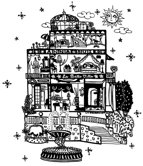 I love drawing houses, these are some of them which appeared on my illustrative book "Into the Magickal World of Delite", some for Anna Sui tee collection, and some for my other clients...